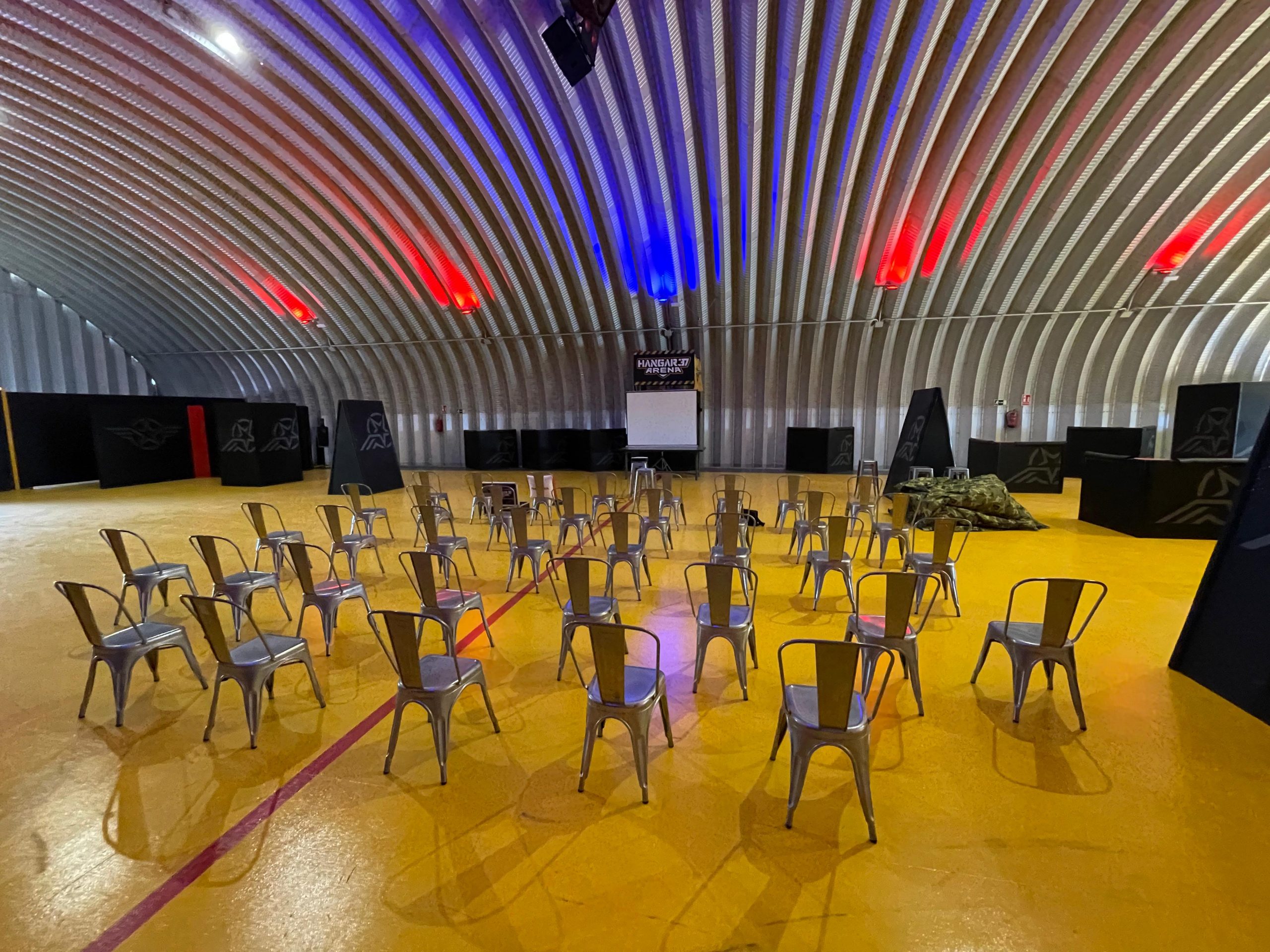 Disponemos de un enorme hangar de 800m2 perfecto para albergar cualquier tipo de evento, fiesta o celebración. Dispone de iluminación RGB decorativa, internet alta velocidad, sonido envolvente y una potente instalación eléctrica lista para instalar cualquier tipo de sistema audiovisual.